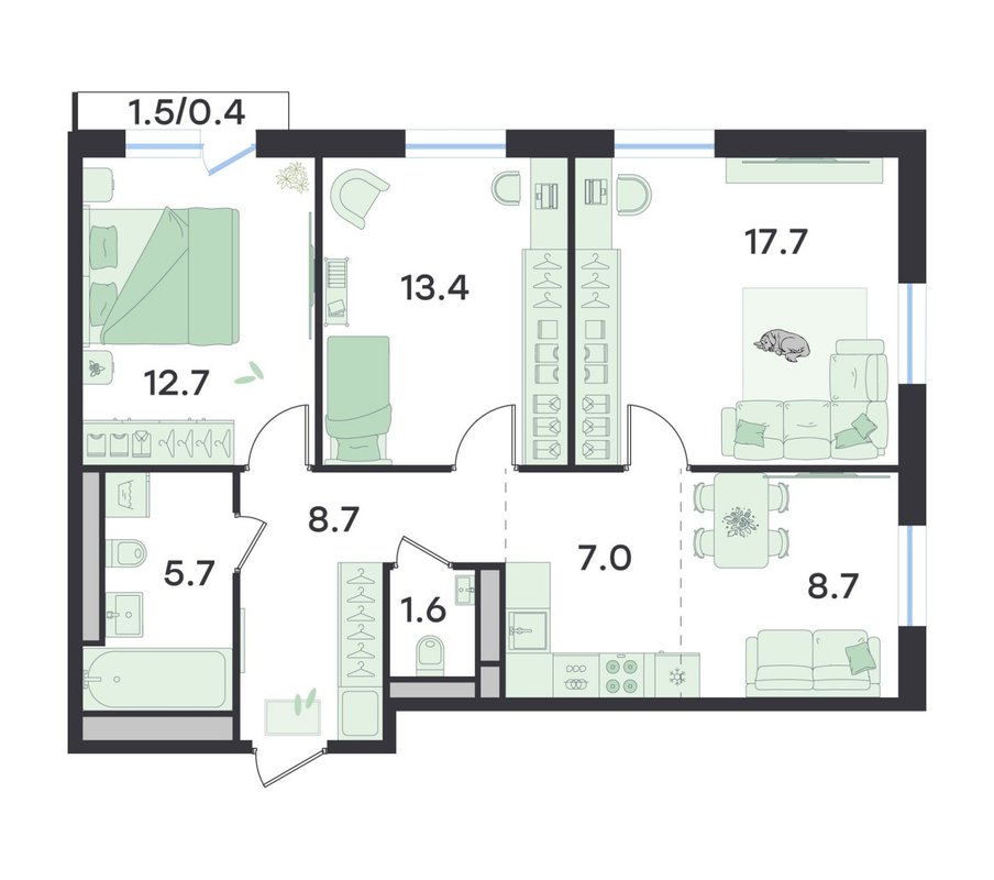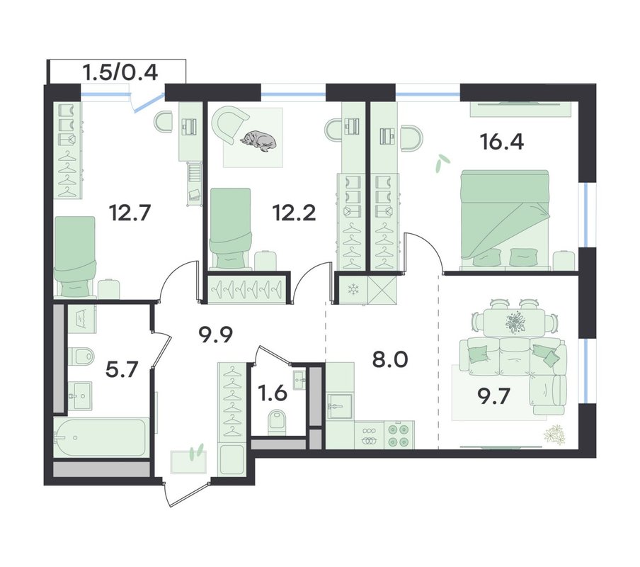 Варианты планировки евро 4-комнатной квартиры 75.5 м²